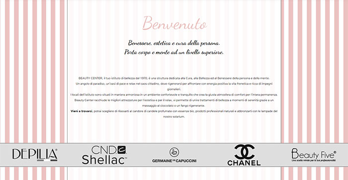 BEAUTY CENTER è una struttura dedicata alla cura del corpo e della mente. Trattamenti Viso, Corpo, Mani e Piedi, Depilazione, Make-Up, Meccanici, Solarium. Prodotti professionali e innovativi garantiscono risultati eccellenti anche grazie all'impiego di tecnologie avanzate e personale qualificato in costante aggiornamento.